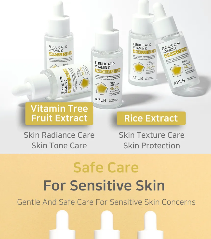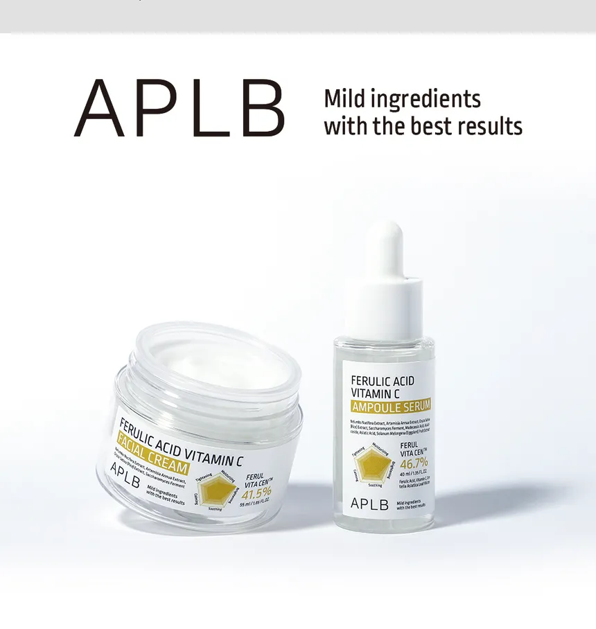 APLB Ferulic Acid Vitamin C Ampoule Serum | FERUL VITA CEN™ 46.7% 1.35 FL.OZ/Korean Skincare, Antioxidant, Wrinkle care, Dark spots, Elasticity care, Helps with skin discoloration