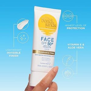Bondi Sands Fragrance Free Daily Sunscreen Face Lotion SPF 50 | Hydrating UVA + UVB Protection, Non-Greasy, Gentle, Water Resistant | 2.53 Oz/75 mL