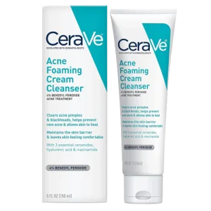 CeraVe Acne Foaming Cream Cleanser, 4% Benzoyl Peroxide Face Wash With Hyaluronic Acid, Niacinamide & Ceramides, Gentle Daily Acne Treatment For Face 150ml