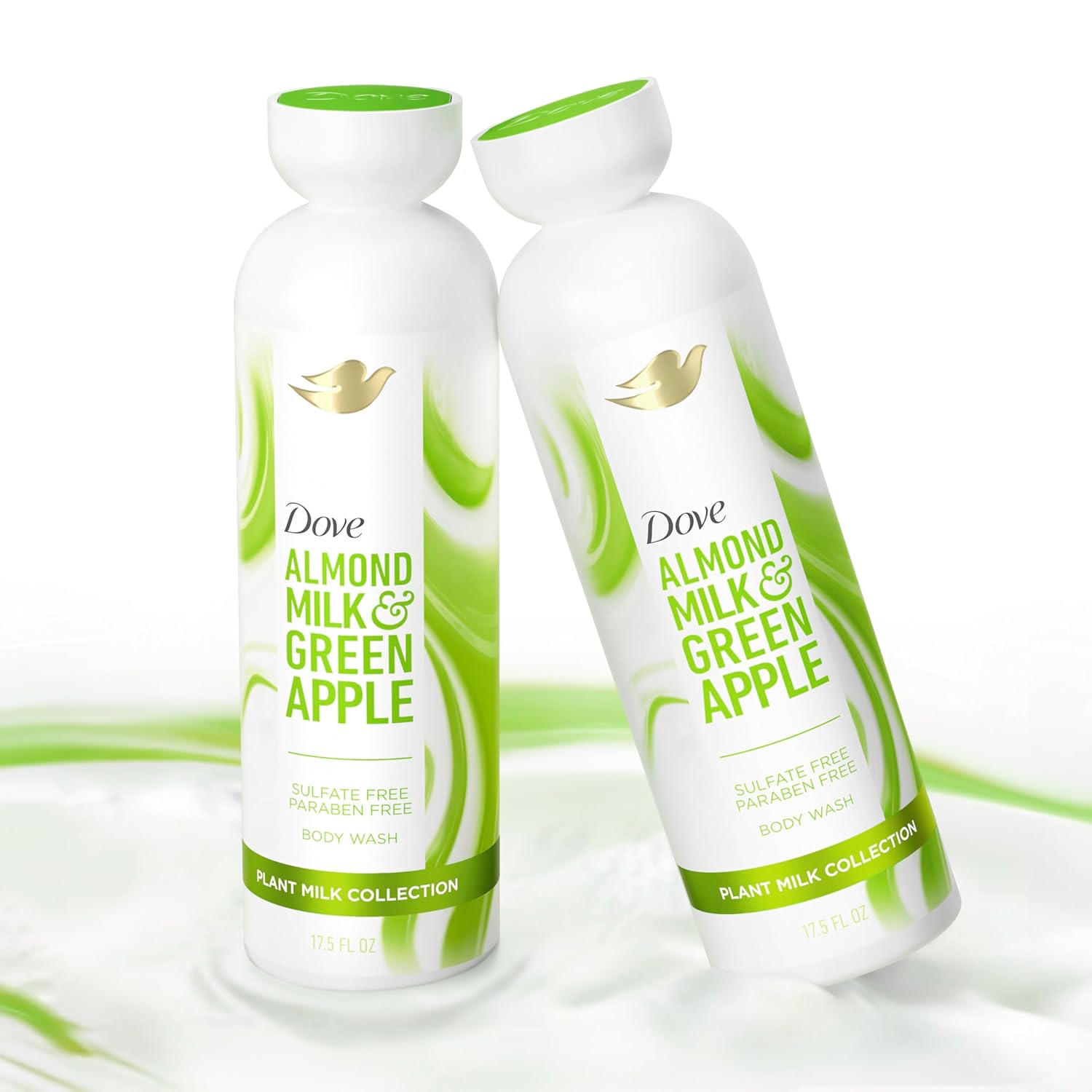 Dove Plant Milk Cleansing Body Wash Almond Milk & Green Apple for Moisturized Skin Gentle Cleanser, No Sulfates or Parabens, pH balanced 17.5 fl oz