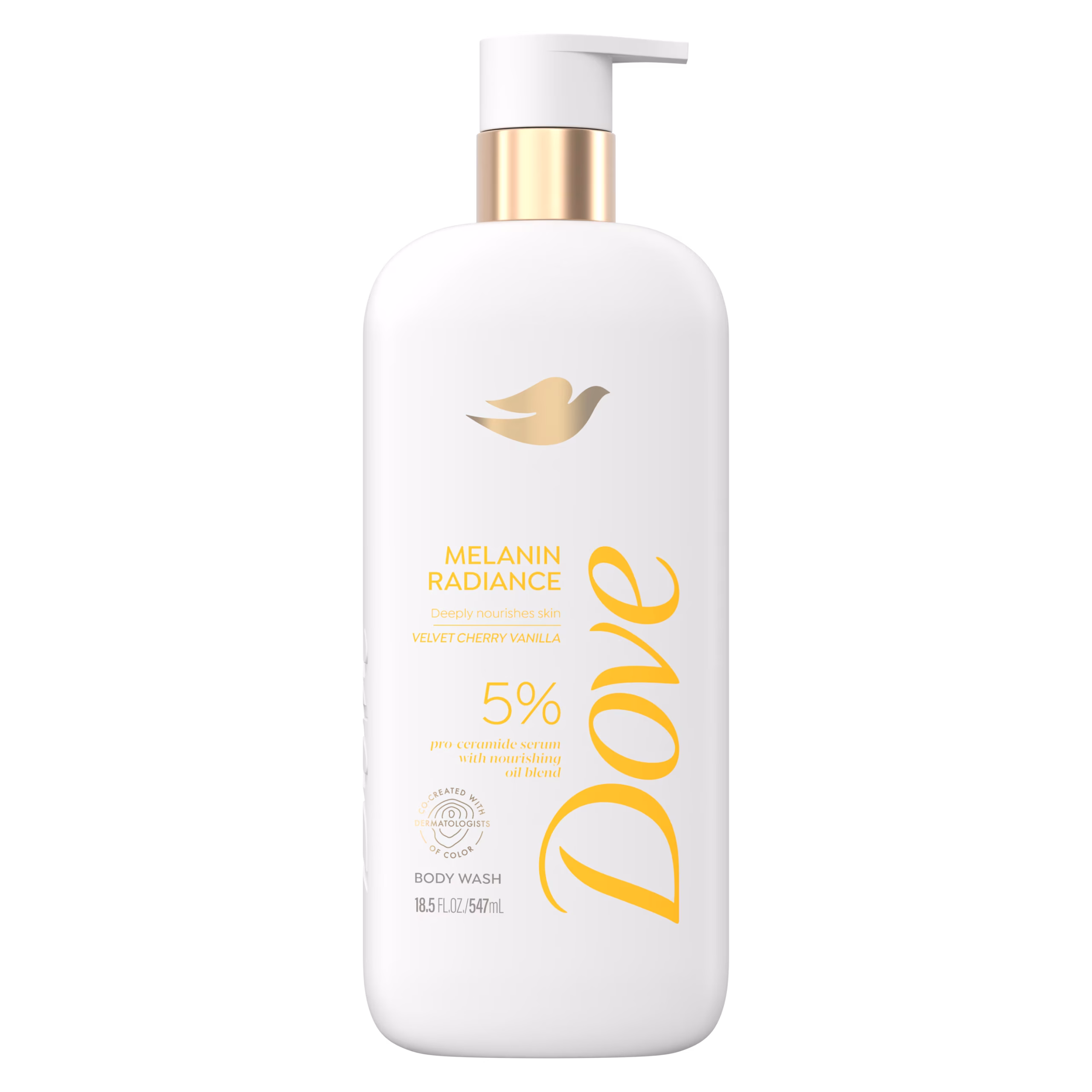 Dove Body Wash Melanin Radiance Nourishes for restored radiance 5% pro-ceramide serum with nourishing oil blend 18.5 oz